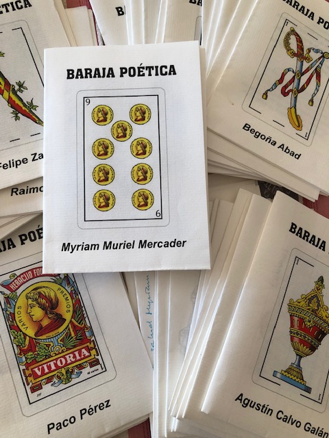 La Baraja Poética es una colección editada por la editorial Babilonia de Navarrés. Su director Francisco Pérez Belda creó esta pequeña colección en formato de baraja – con todos sus cartas y palos – para mostrar poemas visuales de una selección de artistas visuales españoles, a cada uno de los cuales asignó una baraja. Tuve el honor de ser una de ellos con el Nueve de Oros.