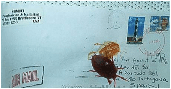 En el AMMA-TDS se han recibido cosas pegadas en el sobre que son indiscriptibles, como esta cucaracha de caucho quer nos llego desde USA enganchada con silicona.