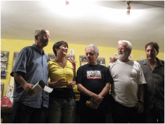 Isabel Lazaro fue homenajeada por el AMMA-TDS por la tesina realizada en la Universidad de Barcelona sobre Arte Postal. Obtuvo la calificación de Excelente. En la foto con algunos de sus colaboradores.