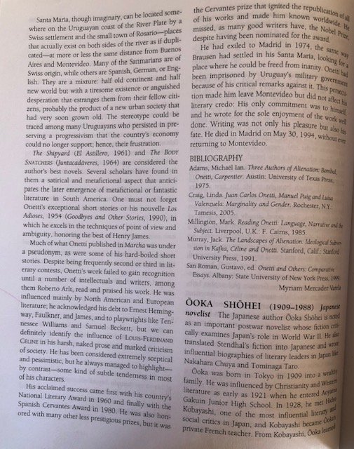 Michael D. Sollars de Southern Texas University es el editor de World Novel 1900 to the Present dentro de la colección Facts on File Library World Literature. Sollars solicitó mi colaboración sobre Juan Carlos Onetti que aquí podéis leer en inglés por supuesto, y con un número limitado de palabras para poder ser incluido. Como resumen sobre Onetti puede ser de interés.
